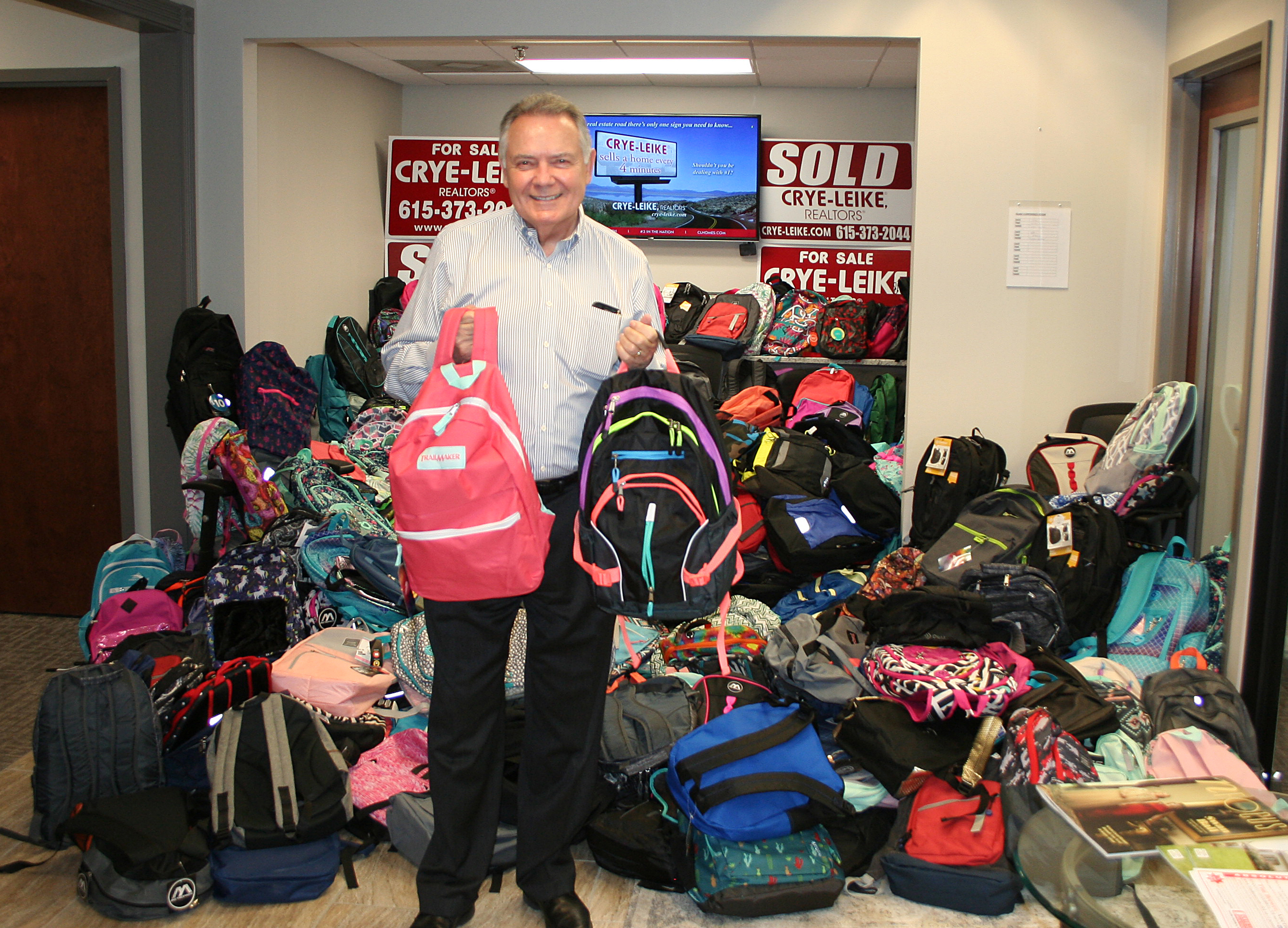 Crye-Leike Principal Broker and Administrative Manager for Middle Tennessee Jason Murphy has organized the Crye-Leike offices' participation in the Backpack Heroes Program year-after-year. Once all of the backpacks are collected, Youth Villages comes to the Crye-Leike Brentwood office with students to pick up the supplies.