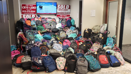 Nashville, TN: Crye-Leike Real Estate Services has teamed up with Youth Villages of Middle Tennessee to support the Backpack Heroes Program for the 19th consecutive year. This year, Crye-Leike broke its record, donating 494 backpacks full of school supplies to Youth Villages.